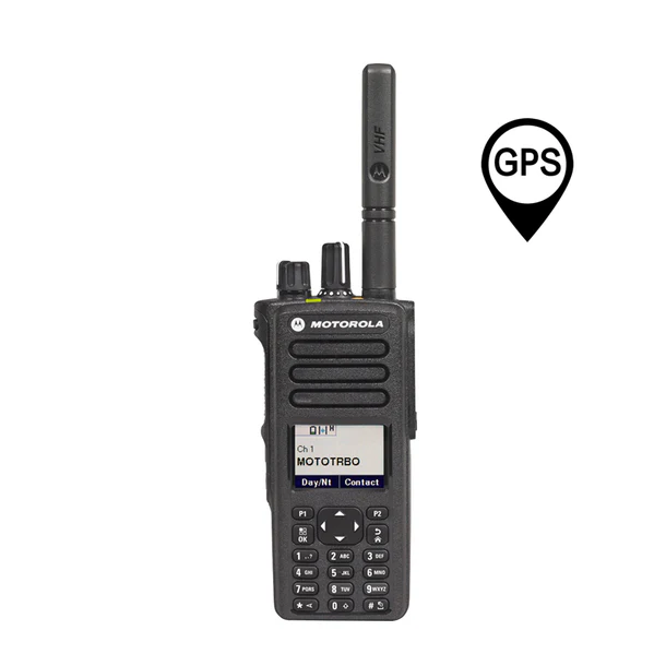 Motorola DP4801e VHF or UHF Analog & Digital Portable Two-Way Radio complete with GPS, battery, antenna & charger.